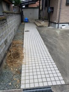 アプローチ左側の土の部分に